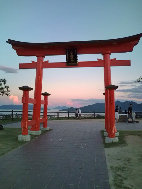 SAから双眼鏡で厳島神社が見えます。